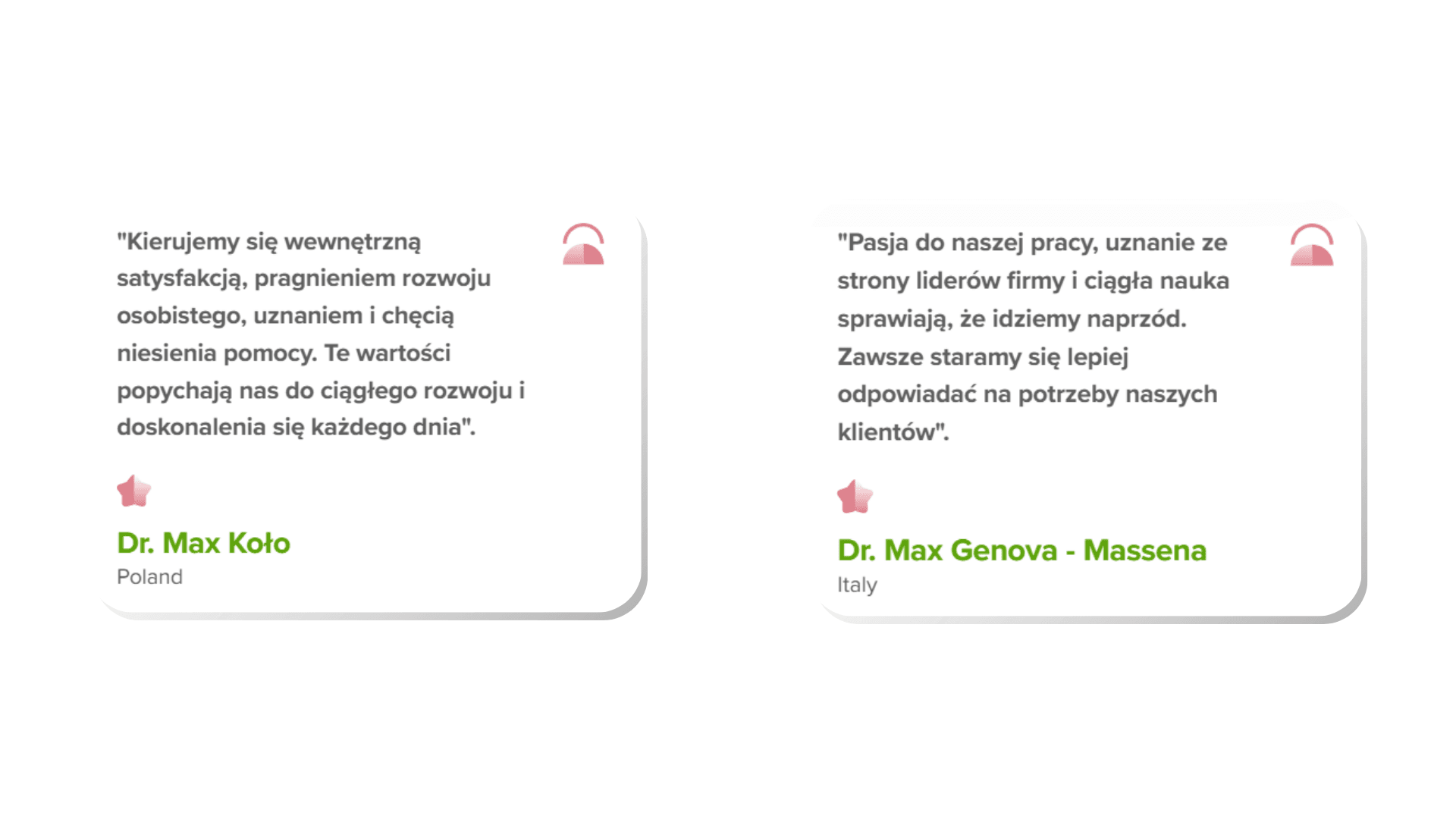W Dr. Max Ambicja nie jest tylko słowem w kodeksie wartości. To postawa, z którą podchodzimy do każdego wyzwania - niezależnie od tego, czy dotyczy ono pacjenta przy pierwszym stole, nowego projektu w centrali, czy pomysłu, który może usprawnić codzienną pracę.